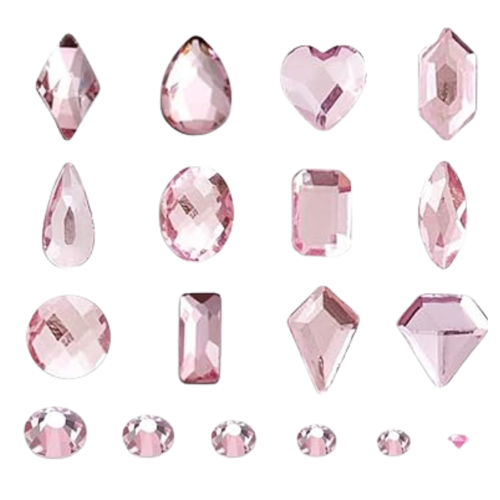 Rhinestones come in a variety of sizes, facets, and materials, all of which will affect their sparkle and durability. My Bling Blends primarily use a combination of acrylic and resin jelly embellishments.