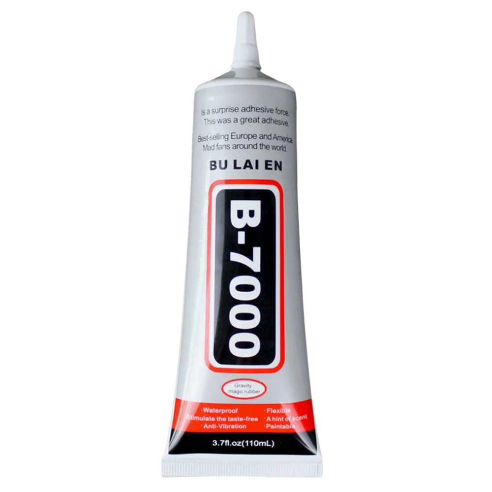 There are many different types of glue out there, and it may take trial and error for you to figure out what works best for you. I prefer working with B-7000 but E-6000 is another great option. Do not use super glue or hot glue.